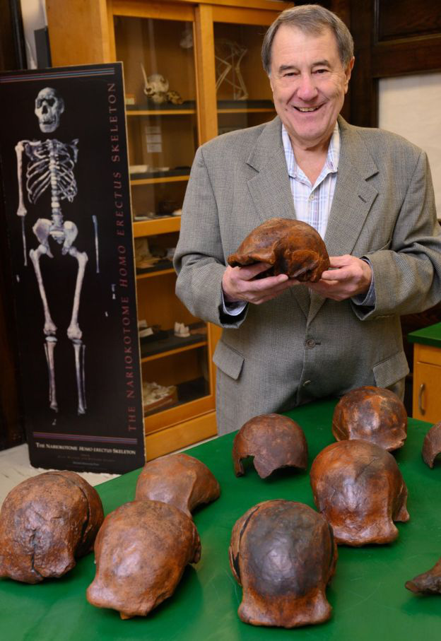 Giáo sư Russell Ciochon bên những hộp sọ của loài người cổ xưa này được tìm thấy tại Java - ảnh: IOWA UNIVERSITY